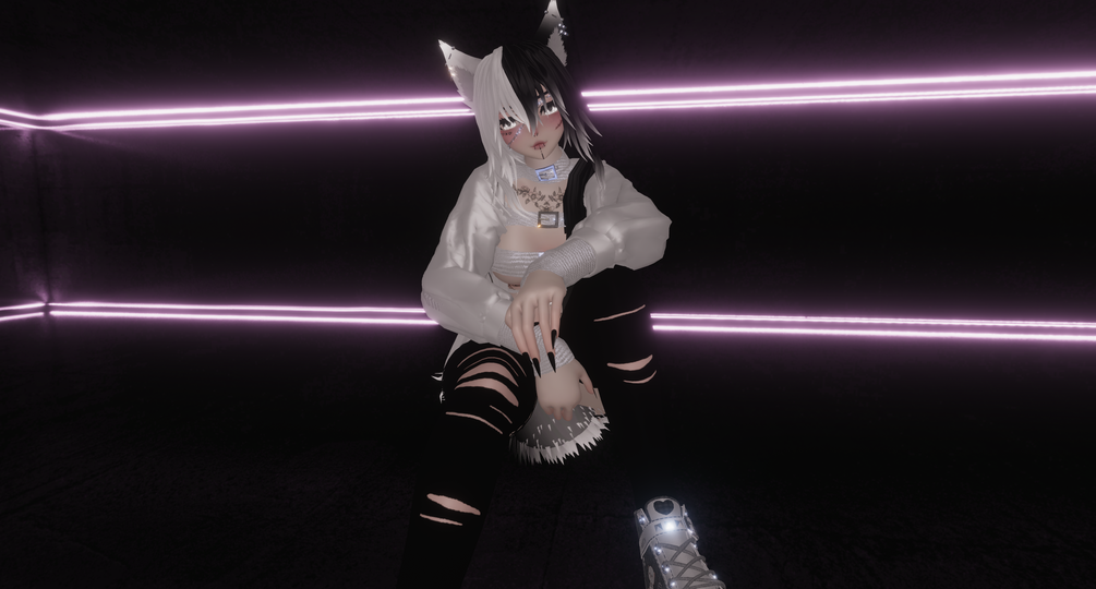 vrchat avatar girl fox kitsune dance cute comfy hip hop cat kitty white black sport neko anime 3d model virtual reality unity blender elf goth gothic grunge tattoo edgy puppy couple egirl eboy oculus quest